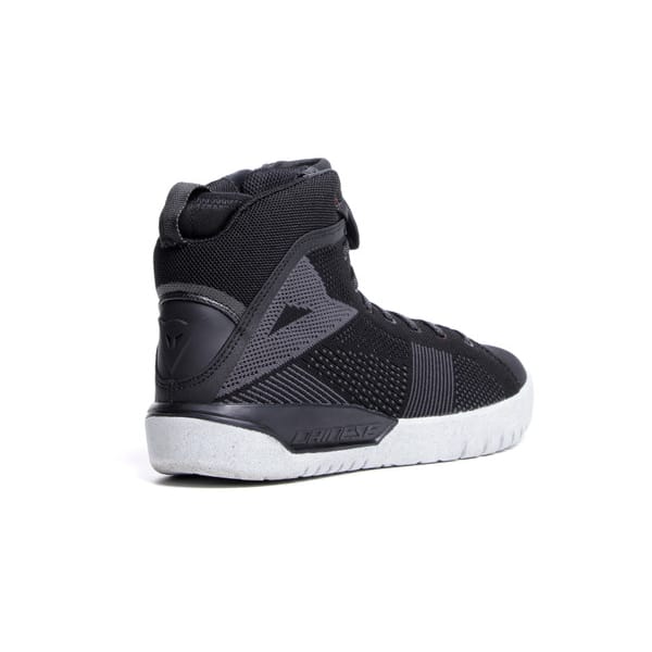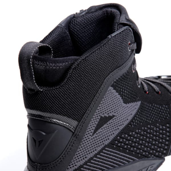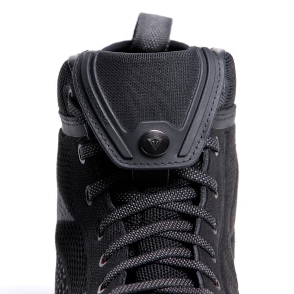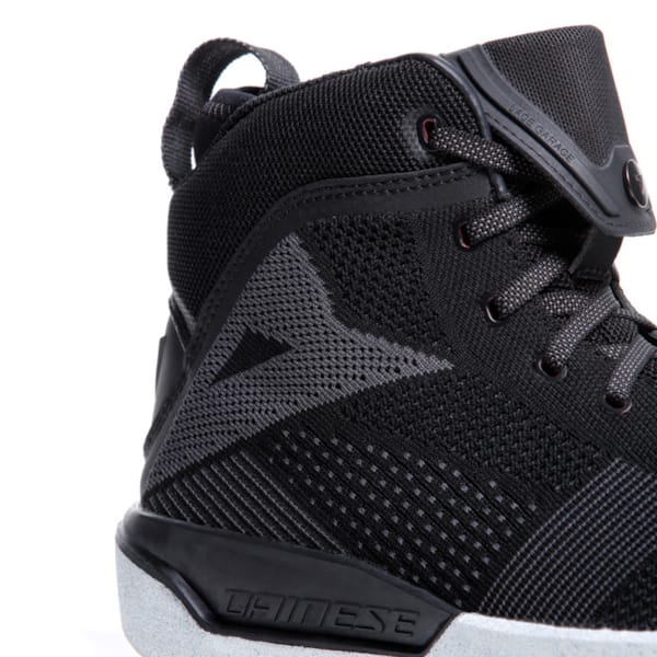 The suede inserts (perforated on the interior) alternate with ventilated ‘knitwear’: knitted textile, wear-resistant and sufficiently sturdy to inspire confidence when you put your foot down at a stop sign. This results in a healthy air circulation. The concession obviously being that there is no waterproofness. Choosing is always a little bit of losing and we’d rather focus on what we do get at DAINESE.