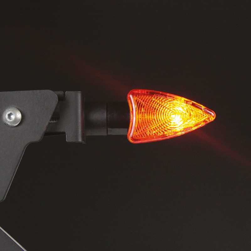 The compact CHAFT Tyson gives your motorcycle a sleek, tuned look. This aggressive looking, universal turn signals feature a 5W halogen bulb and a flexible stem. The black housing is made of plastic, the lens is orange. These CE homologated turn signals come in pairs, and include cable and nut.