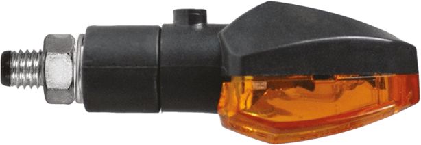 The minimalist CHAFT Tinny gives your motorcycle a clean, tuned look. This aggressive looking, universal turn signal features a 6W halogen bulb and a non-flexible stem. The black housing is made of plastic, the lens is orange. These CE homologated turn signals come in pairs, and include cable and nut.
