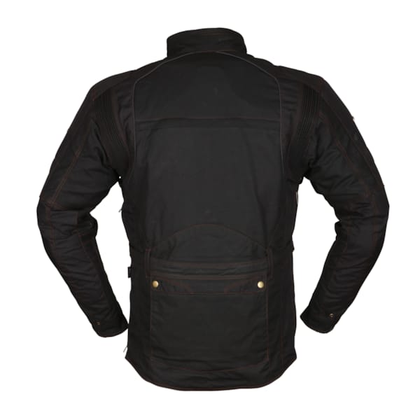 Classically British in look and feel, but with modern features. Glasgow combines the 'good old style' with the efficiency and technical know-how of a modern textile jacket. At first glance, the Modeka Glasgow looks like a classic British wax jacket. Complete with belt and buckle, which provide a centered look. The exterior is made of high quality water repellent cotton wax (polyamide), finished with perforated leather panels. Water repellent is not waterproof just yet, so a removable Humax membrane is provided: breathable yet 100% water- and windproof. On winter rides, a removable thermal lining provides extra warmth and comfort. Ventilation openings at chest level, back and underarms provide cooling in summer. This 3-in-1 wax jacket is one for all seasons. And many after that.