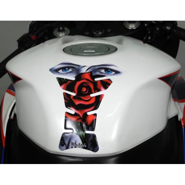 The Keiti tank pads are made of high quality vinyl. The images are screen printed with UV-resistant paint to prevent discoloration. After printing, the tank pads are finished with a layer of special resin that provides extra wear resistance, colour fastness and scratch resistance. This gives the tank pad a total thickness of only 1.5 mm. The exact dimensions of this tank pad can be found in the 2nd picture.