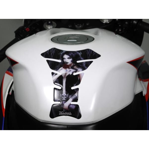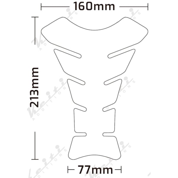 The Keiti tank pads are made of high quality vinyl. The images are screen printed with UV-resistant paint to prevent discoloration. After printing, the tank pads are finished with a layer of special resin that provides extra wear resistance, colour fastness and scratch resistance. This gives the tank pad a total thickness of only 1.5 mm. The exact dimensions of this tank pad can be found in the 2nd picture.