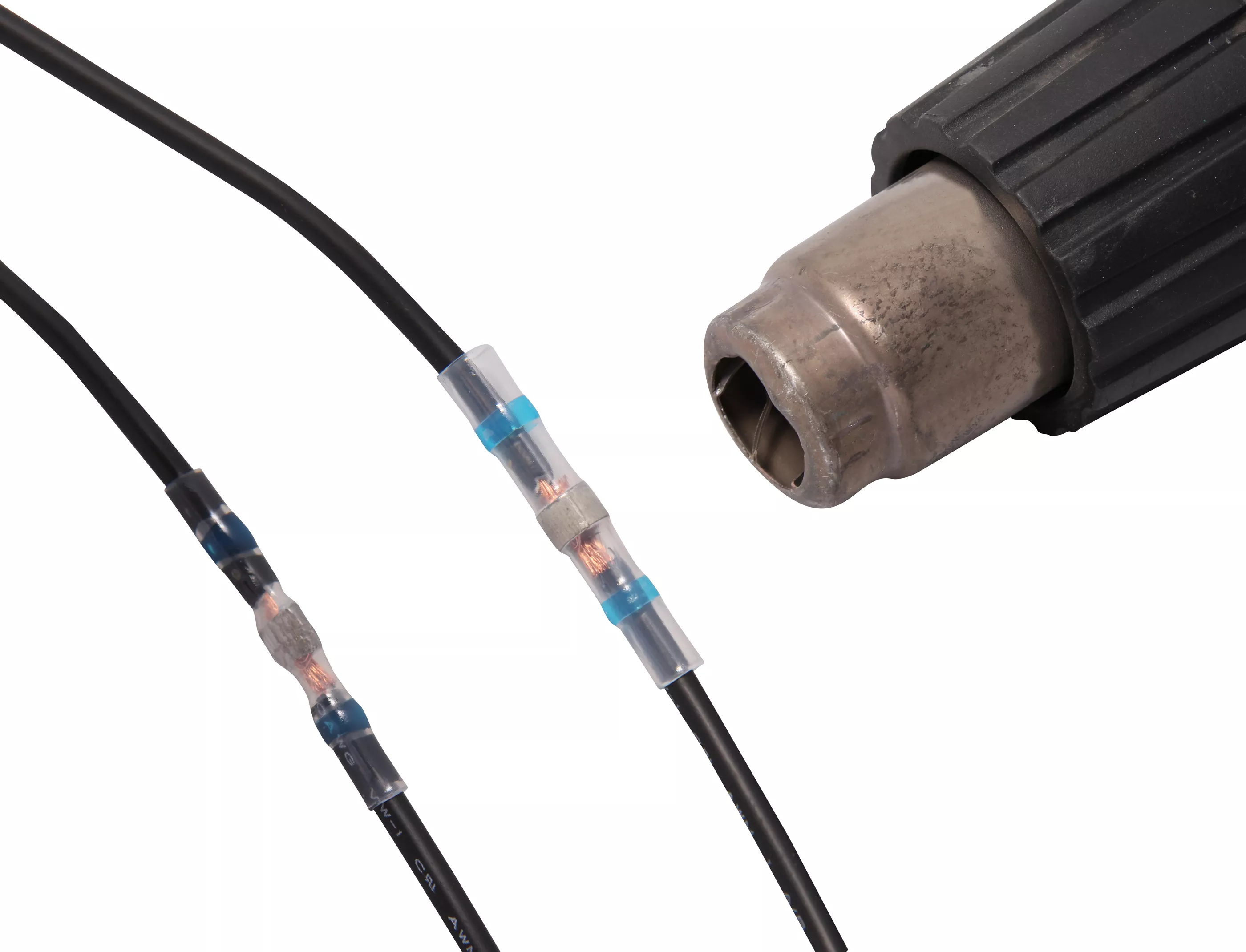 This set of solder connectors with shrink tube allows you to both solder and shrink, in one smooth motion. You just heat up the whole connector – solder and shrink tube – to create a good connection.