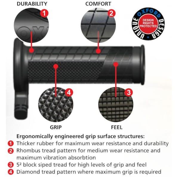 The Oxford Premium Hotgrips are the result of thirty years of development, a constant search for the best solution to keep hands warm in the worst conditions. There is this 'Touring'-version, but there are also versions (adventure, sports, retro, ATV, cruiser) that focus on different riding styles.