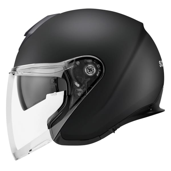 The M1 Pro comes with a clear visor as standard, made from a scratch-resistant material and long enough to protect your whole face from wind and elements. So there's no need to avoid the motorway, and hanging on the throttle won't leave you gasping for breath. Thanks to the quick-release system, the visor can be replaced easily and without tools, possibly with a tinted or mirrored visor. Real die-hards can attach an optional Pinlock® lens. The visor is prepared for this, but because most motorcyclists are not, you have to buy this separately. If you prefer complete freedom, you can just as easily leave the visor at home. In that case you attach - also new compared to the original M1 - the cover piece over the visor mount so it doesn't look like you've dropped the helmet and the visor has just been ripped off. A visual bonus, we think. A treatment on the outside of the visor with Rain-X anti-rain spray improves visibility during rain showers.