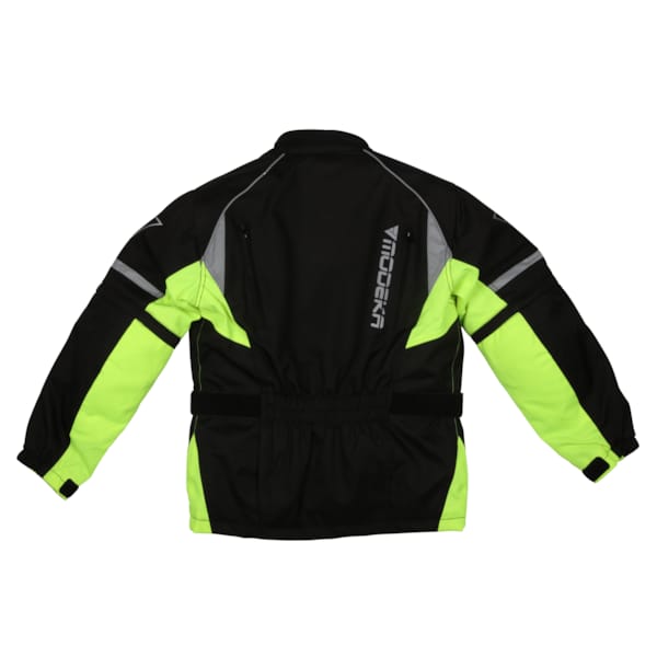 The short textile jacket (600D polyester) is waterproof and comes standard with a breathable mesh lining to reduce perspiration. The non-removable, 100 % waterproof and windproof HITEX membrane offers comfort in many weather conditions. On cold days, it is perfectly possible to attach the included, removable, extra thermal liner for additional warmth. Assuming for the moment that you do not take children to ride pillion when it’s freezing your butts off, it means that the Tourex II for children is a motorcycle jacket that can be used all year round. Ventilation openings on the chest and back (Air Vent) allow for riding wind to pass.