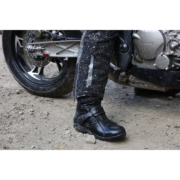 With a bit of bad will one can see a sawn-off adventure-motor boot in it. Externally there is something to be said for that: the two flexible plastic buckles are typical for this market segment and once you adjust the length correctly, getting in becomes a real ease. Quick-release buckles also do as they promise: allow you to get out of the boot quickly.
