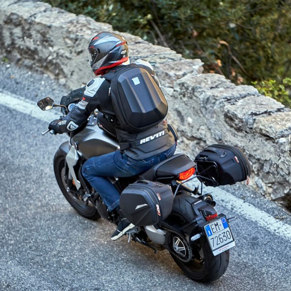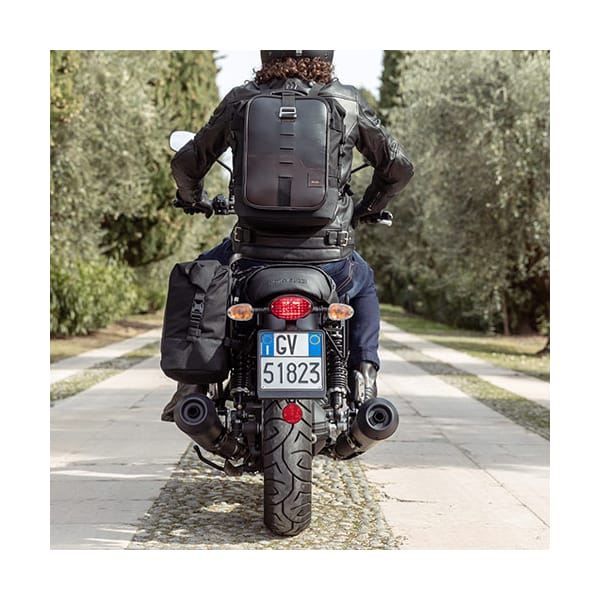 To translate 22 liters into dimensions, we need an engineer, or just a good tape measure: 43 x 27 x 30 centimeters. That is about the same as a saddlebag or a big tankbag. You could even turn the motorcycle backpack T-Sport ST606 into the former.