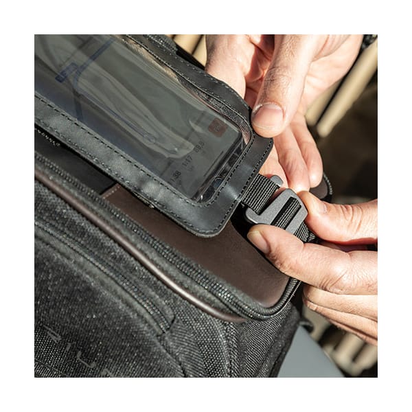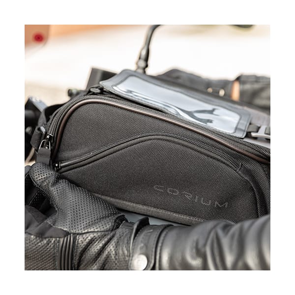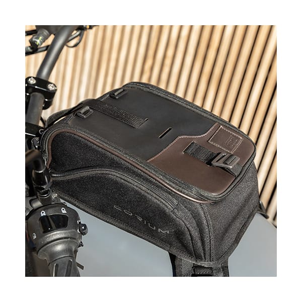 Just like the complete Corium collection, this tankbag consists of durable 1200D polyester, completed with dark brown and black (PU) leather.
