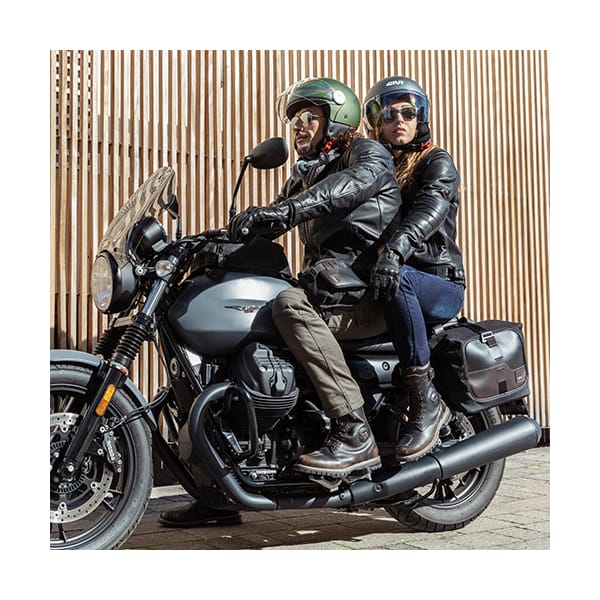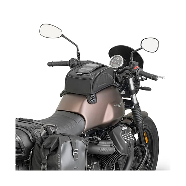 This magnetic tankbag (straps are also provided) from the Corium collection by GIVI fits perfectly with the look and style of most retro-bikes, café racers and customs. Classic, a stripe of leather, but also with a contemporary eye for detail.