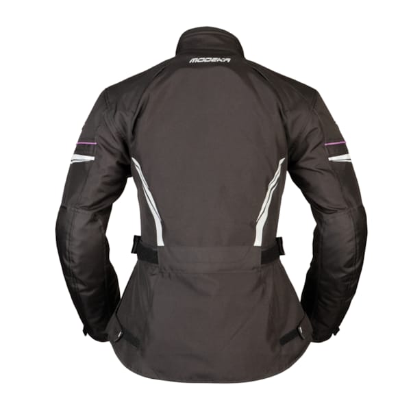 The exterior of this Violetta Lady consists of a hard-wearing and tear-resistant 500D polyester, which has been given a double layer where useful and/or necessary. That's enough to get you places. And despite the wear- and tear-resistance, the Violetta Lady feels quite comfortable, something Modeka often makes a point of. The outer shell got an integrated Humax®-Z-liner, which is water- and windproof and breathable. It also makes extra membranes superfluous. Or it must be a removable thermal layer. It seems thin, but it has the right properties to provide extra warmth and comfort during cold rides. Remember the first paragraph: we would not go to the extreme north, but touring between the 40th and 60th degrees of latitude should be possible. Concretely: from Oslo to the south of Spain.