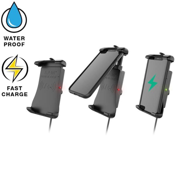 That makes it ideal for the bike, allowing you to use that smartphone while charging it. To be honest, that is often the problem when a smartphone doubles as a GPS. With the RAM® Quick-Grip™ Wireless Charger and Cradle this is a thing of the past.