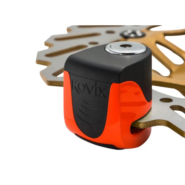 The KOVIX KS6 series disc brake lock with alarm is a very compact motorcycle lock. The battery charges via USB, which has its advantages.