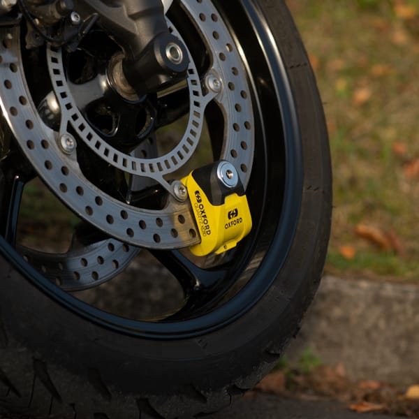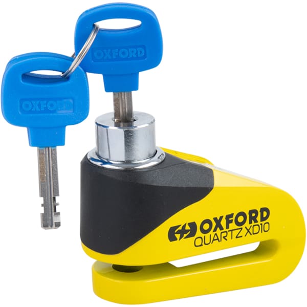 The Quartz XD10 disc brake lock offers a stiff challenge to any potential thief. Oxford provided a 10 millimetre diameter locking pin, a striking double strength chassis and - not unimportantly - a reminder cable to prevent you from crashing your bike when you forget to remove the lock.