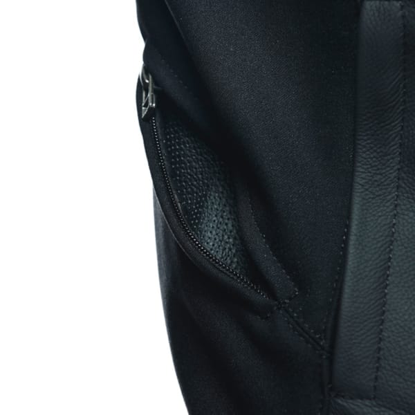 Impact protection is also at the level you’d expect. The EN 1621.1-certified Pro-Armor-protectors seem relatively thin and are flexible, which grants a lot of freedom to move and comfort. Shoulder protectors are part of the well-known Dainese technology – you’ve guessed it, from the racing suits – that also includes the exterior aluminium plates which prevent you from rolling instead of sliding after a fall. The Dainese Sportiva motorcycle jacket is prepared to be fitted with an optional back protector.