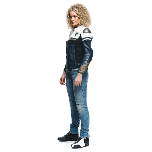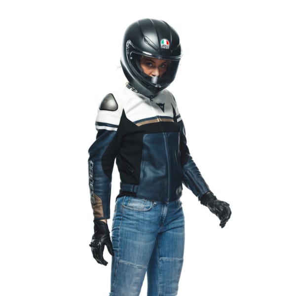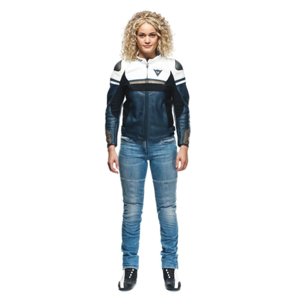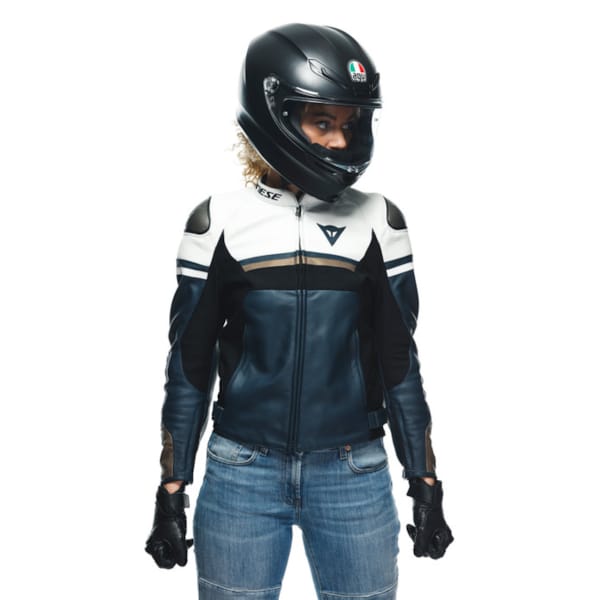 The Dainese Rapida Lady is an undisputable ‘feminine’ leather motorcycle jacket. Better still: it is an undisputable leather motorcycle jacket, that seems to be cast around the female body. Specially designed to find the perfect balance between comfort and sportiness.