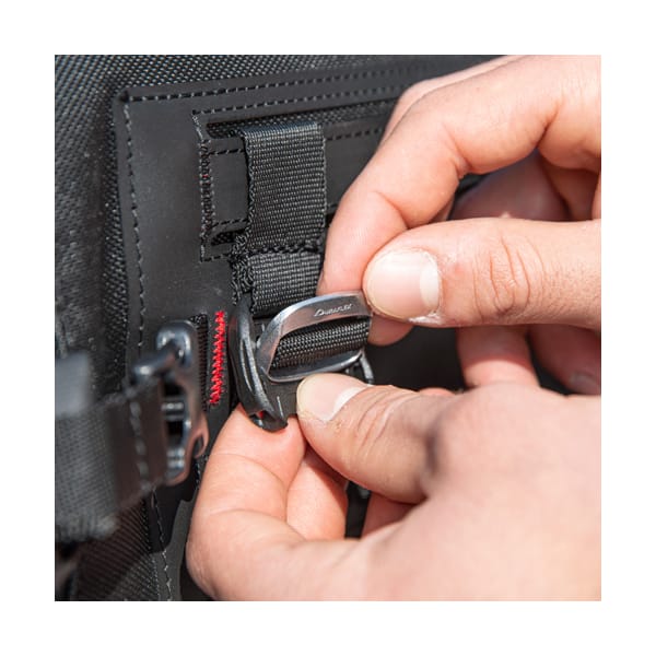 Versatile too: you can mount them on top of top cases with belt loops, on a case rack, a case plate obviously and on the pillion seat. It doesn’t matter whether you’re riding a touring bike or an adventure bike. The most important criterion is that you can attach the straps to the motorbike.