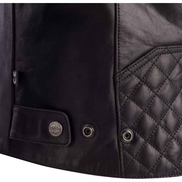 The individual adjustment options are of high-quality but they are not endless. The Track is a motorbike jacket you’ll have to combat at first. It will ‘settle’, so if you hold your breath too much in the beginning, you’re done with. Whatever can be adjusted, is done with pushbuttons or solid zippers; nothing less would fit this leather. This means that you buy the Track as a tight-fitting unit in the first place. To then wear it for five days straight. A customised design could not beat those results.