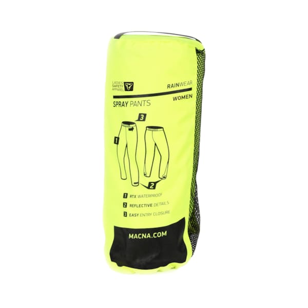 With the MACNA Spray Pants Lady, you kiss that charm goodbye and what you get in return is convenience. Comfort, a little more style and therefore, wanting to leave in the right dress code when skies are already dark and cloudy when you take off. The MACNA Spray Pants Lady are lightweight rain trousers to wear on your motorcycle. Without too many frills, straight to the point and easy to keep at hand. Polyester, lightweight, no lining.