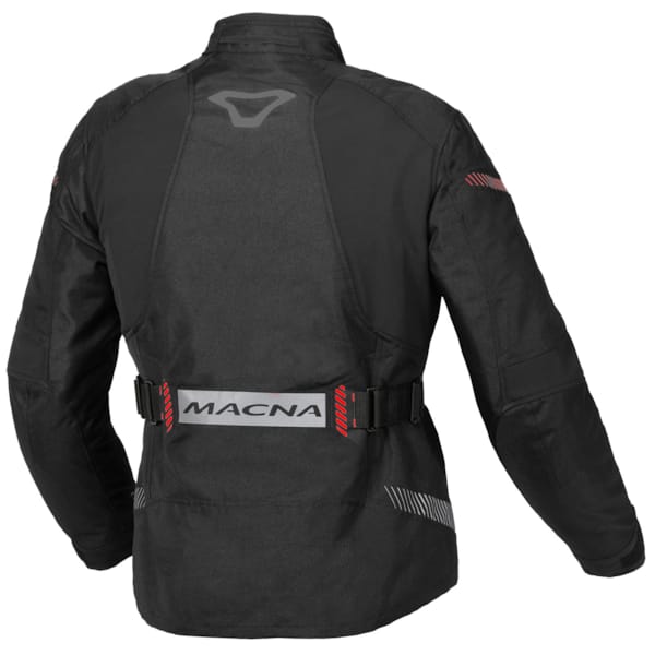 The Nivala is a textile motorcycle jacket for women with the typical Macna cut: slightly shorter in the front and longer in the back; for practical use on the motorcycle. No bulging jackets or cold shivers on your back is what it comes down to in a nutshell. The fixed, integrated Raintex ML membrane ensures waterproofness while a removable thermal lining makes the motorcycle jacket suitable for just about every season. Just about because there aren’t any large ventilation openings. Hence the focus on cold, even though that’s quite subjective.