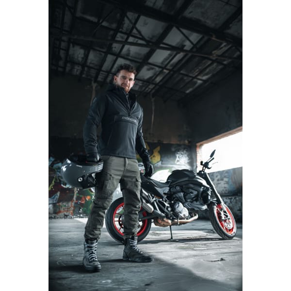 This MODEKA Braker is a motorcycle hoodie in a typical anorak style and a sporty appearance. Young, intended for an urban context with the option to go somewhere after your ride is over, for the better hooligan style riding on an MT-07 or any other muscular naked bike.