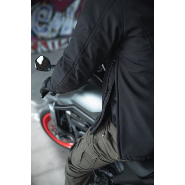 The most remarkable features are the kangaroo pouch in the front and the long vertical zipper on the side, running all the way from the waist up to the armpit. This prevents a bulging effect when you’re ready to shift into first and – even better – this even allows you to put on your motorcycle helmet before putting on the Braker; or just about. In any way, it provides the right amount of flexibility and lots of comfort, two things embodied by the Braker. By the way: the storage pouch in the front is quite sizable.