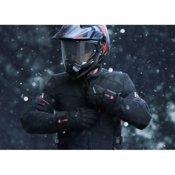 Each Breva motorcycle glove’s long cuff hides a storage compartment for a (compact) battery that is linked to the B-Warm system by means of a single contact point put in/underneath the Softshell by BERING.