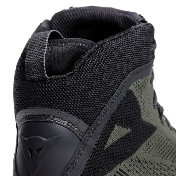 The suede inserts (perforated on the interior) alternate with ventilated ‘knitwear’: knitted textile, wear-resistant and sufficiently sturdy to inspire confidence when you put your foot down at a stop sign. This results in a healthy air circulation. The concession obviously being that there is no waterproofness. Choosing is always a little bit of losing and we’d rather focus on what we do get at DAINESE.