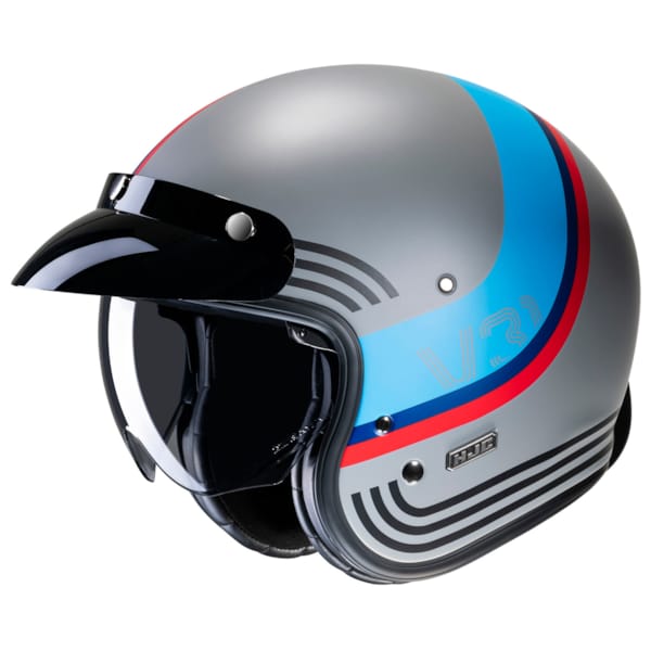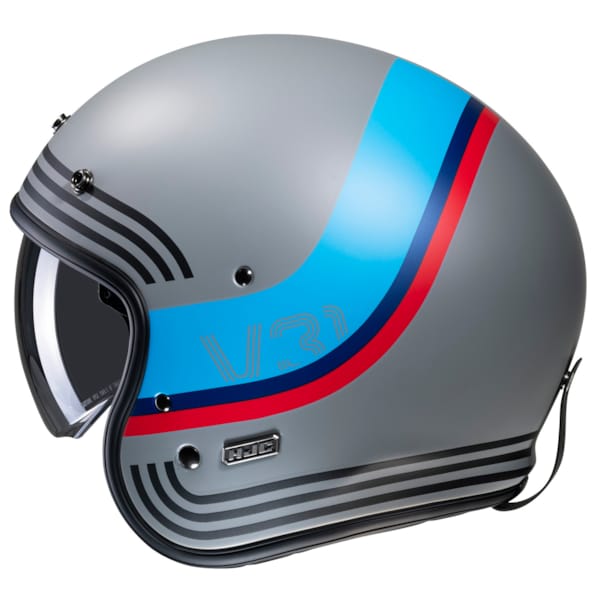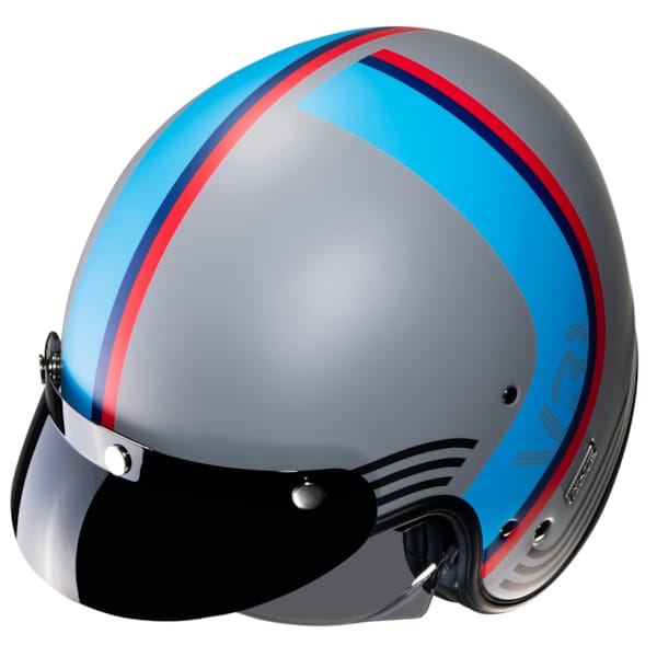 The pushbuttons are back (contrary to its V30 antecedent), in threefold and they fit the tinted sun visor (available separately) and the retro style perfectly. The latter can be found all the way up to the leather attachment element for goggles in the back.
