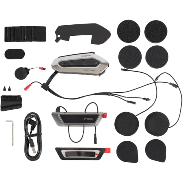 This version of Sena’s most recent intercom systems has been specifically designed to fit (on/in) the SHOEI NXR2 motorbike helmet. It ‘falls’ apart in two units: battery on one side, the intercom itself attached to the other side to let the careless rides begin.