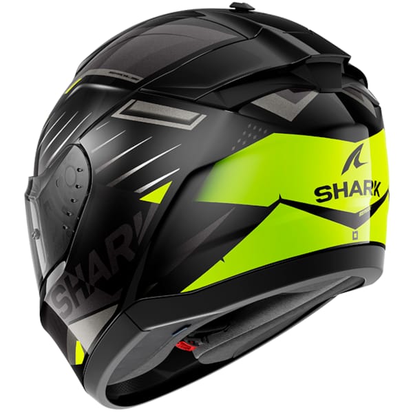 The polycarbonate helmet shell that has been injected with Lexan™ comes in two sizes, that neatly divided among them contain the different helmet sizes. Underneath the solid outer shell, Shark inserts a sturdy EPS padding, delivering numbers that dance around 1500 grams on the scale. Heavy? Well, the new ECE 22.06 certification seems to add a little weight to motorcycle helmets. It doesn’t take anything away from the compact, aerodynamic shape of the Ridill 2, though, that even has an integrated sun visor on board.