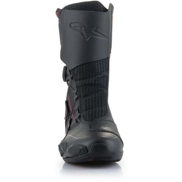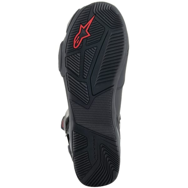 At the base, the shiny TPU heel cover and the toe slider stand out. Invisible but equally important is the Alpinestars TPF Transversal Protection Frame that through your sole prevents your toes and heel from ever pointing in the same direction. The profile of the sole – with an asymmetric back heel – helps maintain your walking stability and a comfortable, natural stride once you step off your motorcycle. The removable OrthoLite® insock and anatomic EVA footbed with Lycra lining play their parts as well.