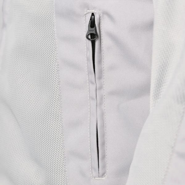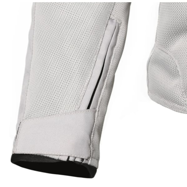 What you see is (almost) what you get. What else, because a mesh jacket always aims at being as non-existent as possible. The sleeve ends with Velcro and a zipper are already one of the practical ways to customise it. Other than that, there’s the short and long connecting zip and the option to combine it with decent motorcycle jeans.