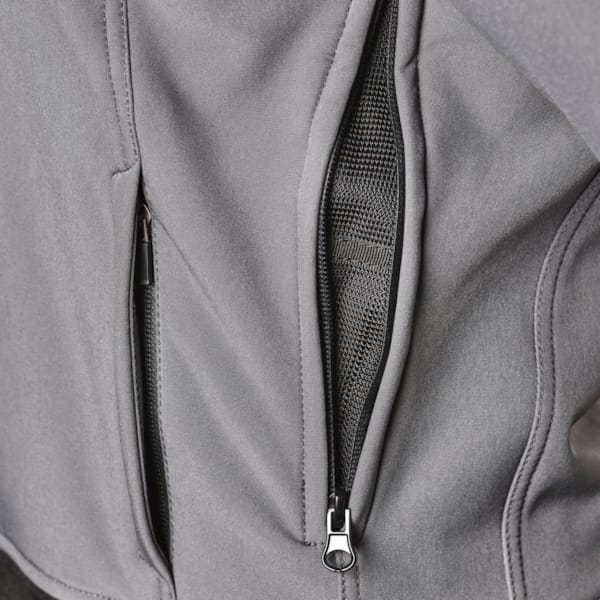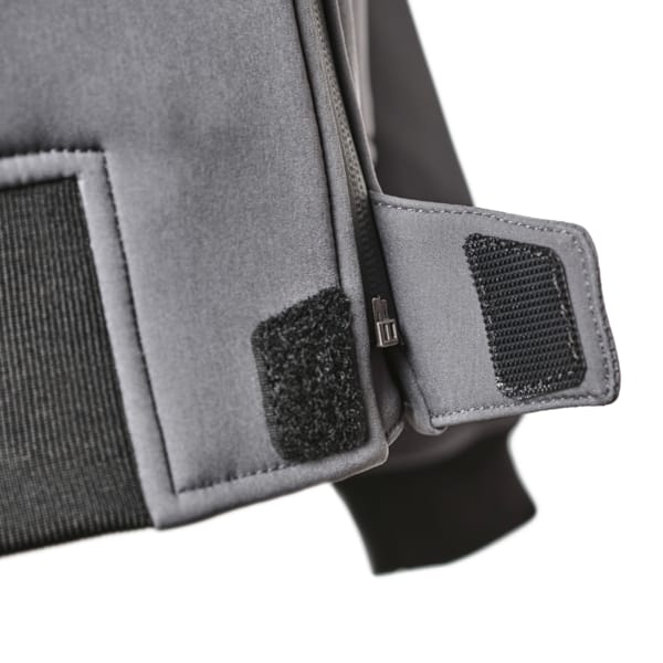 The ‘WP’ stands for WaterProof, a quality attributed to the GMS Metropole WP mainly by the GERMATEX® Z-Liner that’s integrated below the comfortable softshell exterior. Waterproof, wind-tight and breathing, what more can you expect from a membrane. However, it does stay put and cannot be removed. AirVent ventilation zips on the sides allow wind in and provide cooling if needed. According to the GMS description, the zips are waterproof. Experience teaches us to take such comments with a grain of salt. If you really want to travel wind and water-tight, it’s probably better to invest in actual rain gear instead of relying on the properties of the softshell.
