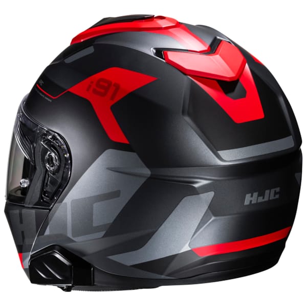 Apart from the new ECE R22.06 homologation, this HJC I91 is also ready to be fitted with the newest generation of Smart HJC intercom devices (11B, 21B en 50B). Even more, HJC has integrated their ingenious and adjustable sun visor. So, a serious update. Take a glance at the price tag and you’ll be sure of that. That glance might as well be peripheral: the transparent visor is wide and stays clear in almost all conditions. Thanks to the RapidFire Shield Replacement System you don’t need tools to replace the transparent visor, while the integrated sun visor gives you reason not to do that all too often.