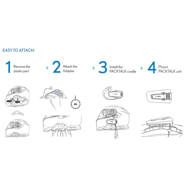 With this adaptor, the Packtalk Edge, Neo or Custom communication module is fitted securely on the left side of your SHOEI motorcycle helmet. The precise location has been appointed for you, so all you have to do is take the original element out of the motorcycle helmet and replace it with this adaptor. It then sticks to it, resulting in a nice and tight SHOEI Neotec II, GT-AIR II and J-Cruise II motorcycle helmet, fitted with the Packtalk Edge, Neo or Custom Intercom. For optimal adhesion, press down hard when fitting the adaptor in place and leave to dry for at least 4 hours before take your helmet out for a ride.