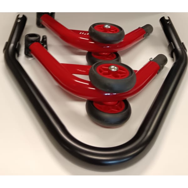 This universal, standard paddock stand for the front wheel is delivered without the required adaptors. The steel 35-mm frame is supported by four nylon wheels. The entire unit weighs less than 5 kilograms. With this, you are getting an excellent assistant for your workshop or home pit box.