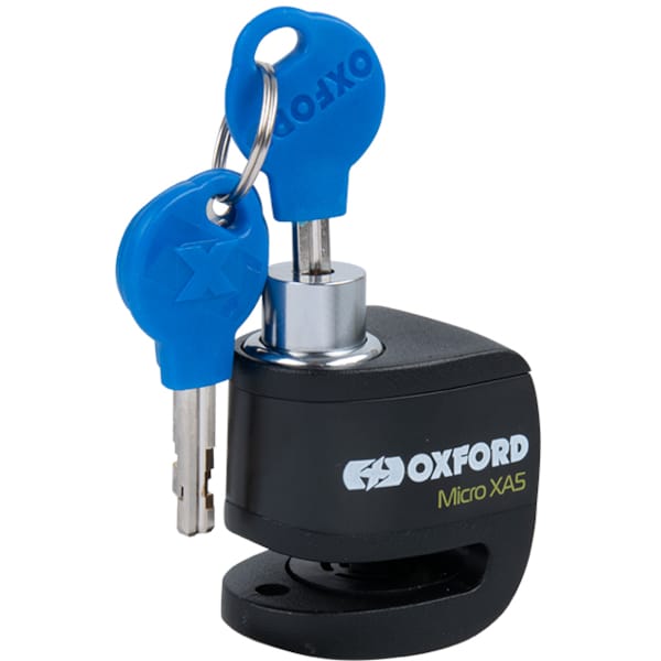 The Micro XA5 disc lock truly challenges any potential thief. Oxford provided it with a 5-mm locking pin and – not coincidentally – a minder cable to prevent you from damaging your own mudguard when you take off. This XA5 is the smaller brother of the Quartz XA10 and the Alpha XA14 disc locks.