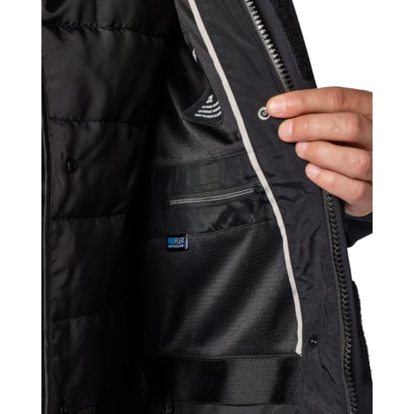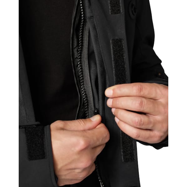 The Trench 2 GTX understandably was given a touring cut, with a back that as expected has a wider finish. You can adjust the jacket on the sides with an additional pushbutton, or you can use the belts with buckles on the lower arms to customise the fit of the Trench 2. The other options are the sleeve ends (Velcro), collar (studs) and waist (drawstring). You probably won’t use this to travel the world but the large slash pockets can contain quite a lot. Except for the two – with magnetic closure – pockets on the outside, there’s also an inner pocket and two pockets in the removable thermal lining for storage.