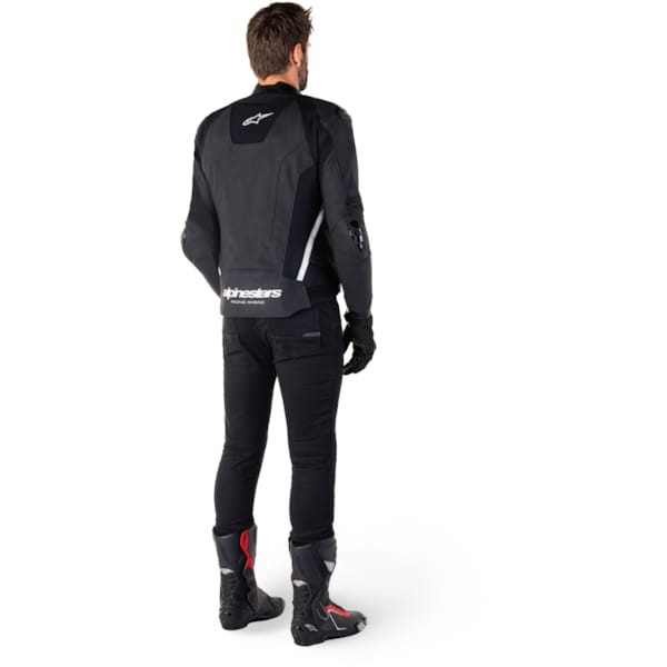 The Missile in this leather V3 version is made from hardwearing, superior cowhide – which comes as no surprise. Leather is always the best, most wear-resistant choice. The only thing is, you don’t move around as freely in it. Luckily, Alpinestars is no rookie in manufacturing excellent to phenomenal motorcycle (racing) gear, so there’s no need to worry. The Italians have provided a preshaped leather cocoon, which is supported on the inside – of what is actually a modern-day harness – by technical stretch panels. These can be found on the chest and upper back, the inside of the arms, underneath the armpits and in the waist. This formula delivers a profound amount of wearing comfort, sportiness, flexibility, a superb fit and loads and loads of protection. There’s even an extra dimension thanks to the removable thermal lining (80g torso, 60g sleeves).