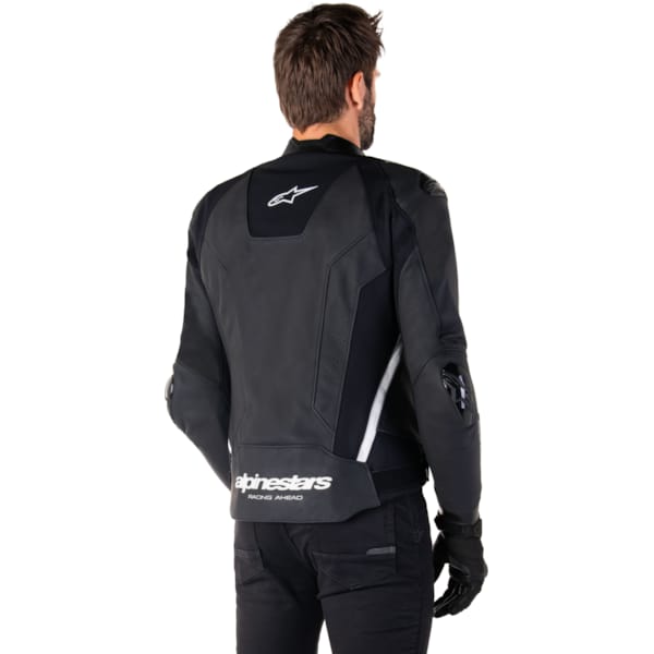 There’s more impact protection on the inside of the leather Missile V3. Alpinestars chooses the standard Nucleon Plasma Pro protectors on the shoulders and elbows: thin, flexible and comfortable. You can opt to add a Nucleon Plasma back protector (level 2 certified) or Nucleon KR-CELLi back protector (level 1 certified) and chest protectors as additional measures.
