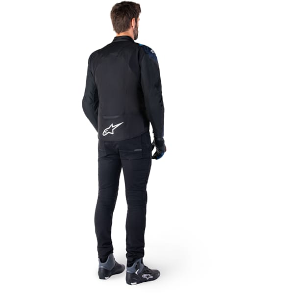 The textile exterior (600D and 450D) is a combination of polyester and stretch material, delivering a wear and tear-resistant unit that allows for sufficient freedom of movement and comfort. An extra level is added with the integrated (non-removable) waterproof membrane. To then push the possibilities to the other extreme, Alpinestars have provided a (removable) thermal lining and strategically placed ventilation zips (under the arms and on the back). The thermal lining is heavier on the torso (100 grams) than it is on the arms (80 grams) to keep that comfort and mobility level on point.