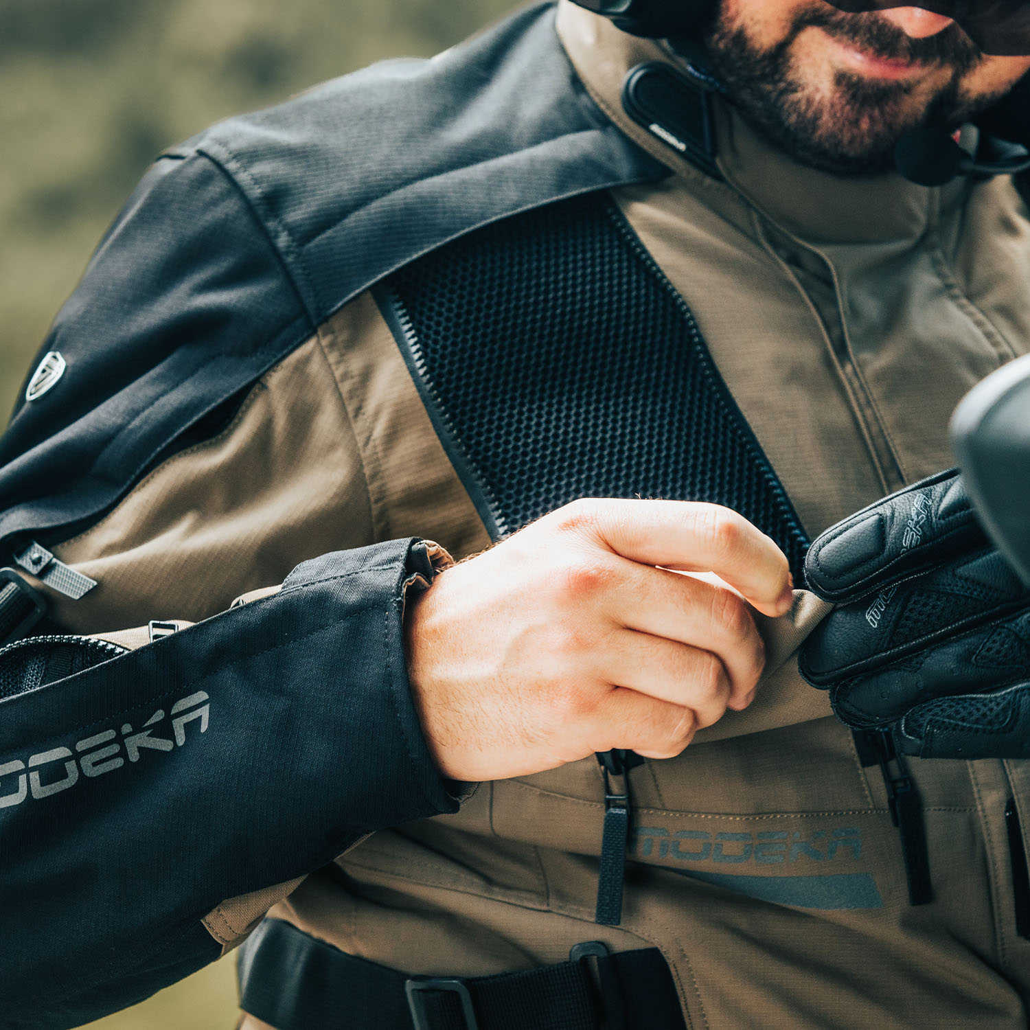 The Lucano is a 3-in-1 with an exterior made from 400D ripstop. Solid and sturdy, with a long service life without feeling like sanding paper. In crucial places, Modeka doubled the layer to optimise the effect. Excellent and because looks are important too, the style and design of the Lucano is relatively clean. Even though this is still an adventurous touring motorcycle jacket, the line pattern emanates a certain elegance.