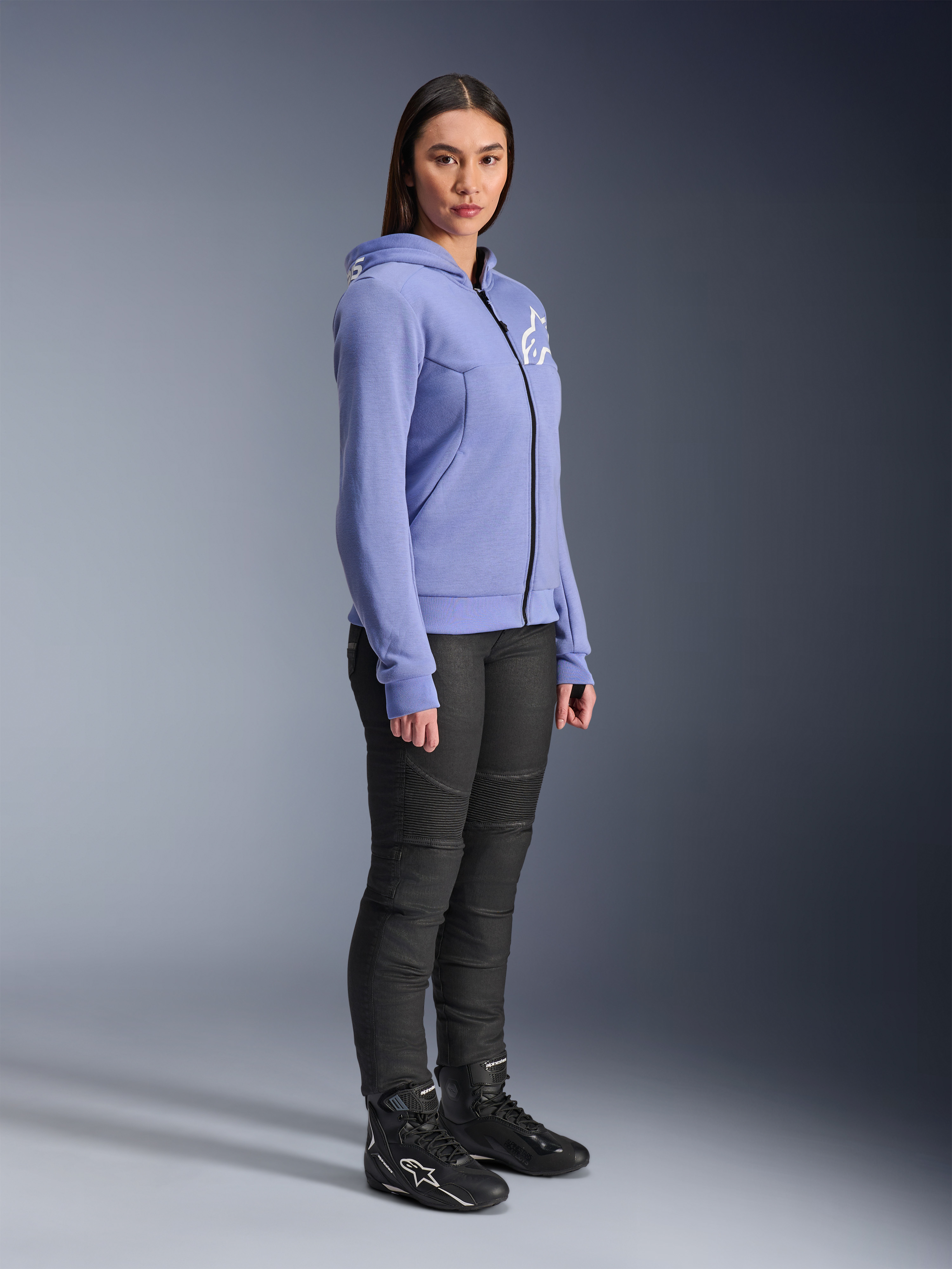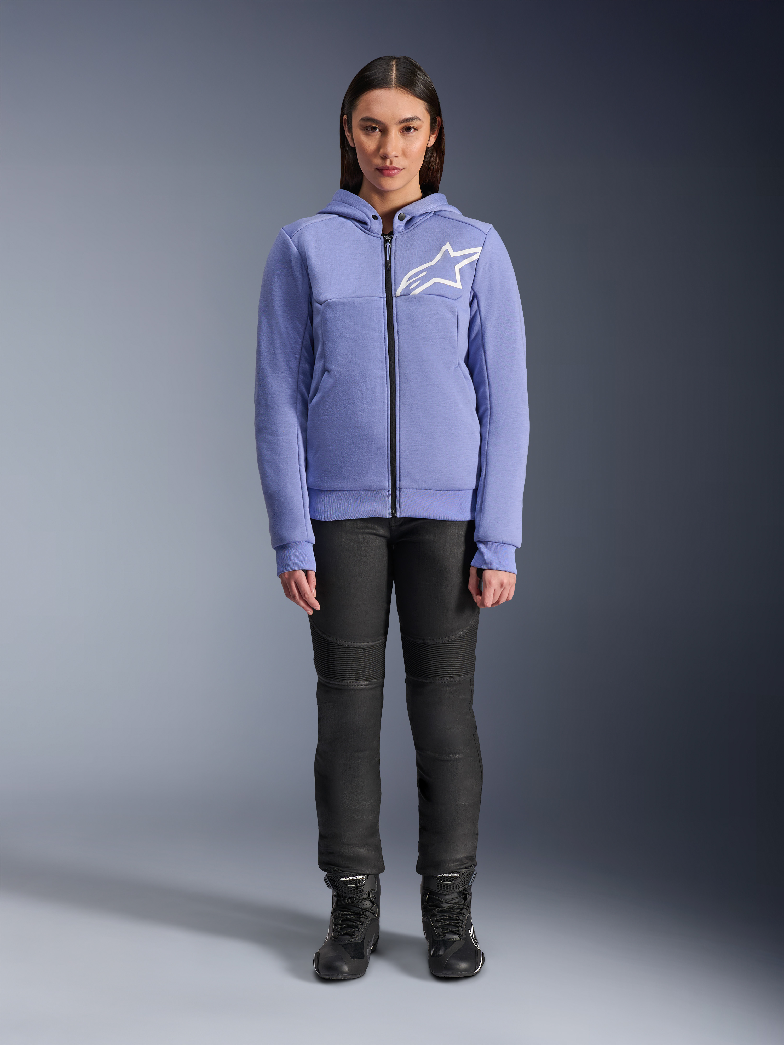 Surprisingly, the Stella Chrome V2 Sport motorcycle hoodie incorporates a lot of – well, it's Alpinestars – water and wind-resistant technology. The outer layer looks somewhat like softshell material but isn’t. It’s called Tech Fleece, and it’s indeed a durable, comfortable, and lightweight fabric, reinforced on the inside with aramid for additional wear and tear-resistance.