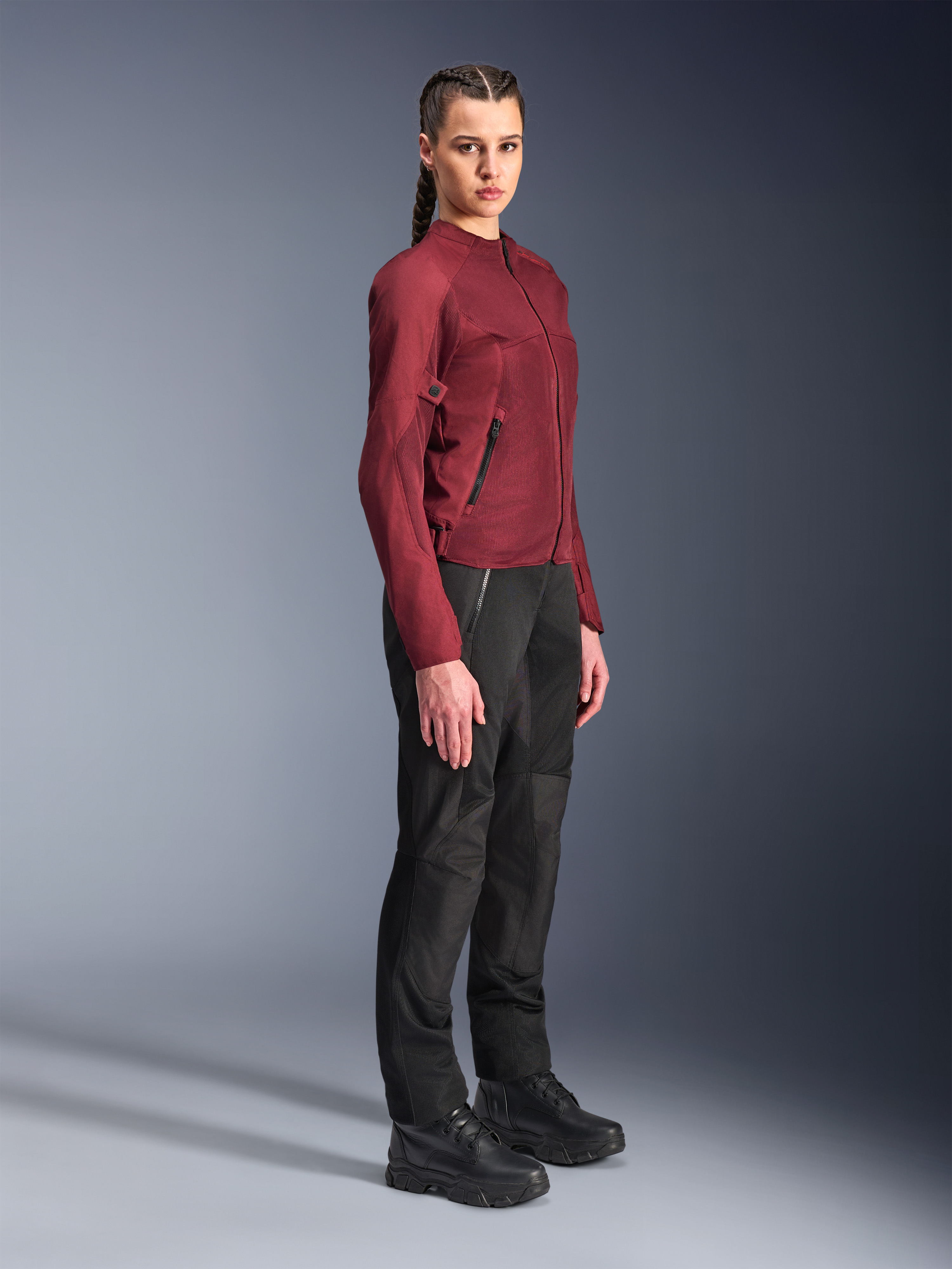 The Stella C-1 Air ventilated motorcycle jacket is equipped with connection loops to prevent it from riding up while riding. For those looking for the perfect combination, a matching ventilated motorcycle trouser is also available.