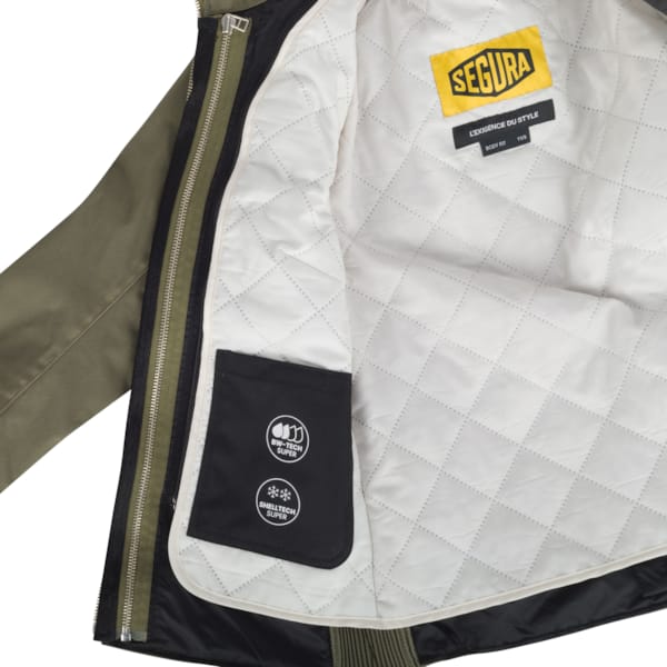 Segura designed this motorcycle jacket to fit your body snugly. The vertical and stretching areas on the sides play an important role here. Two press buttons and a zip at the sleeve ends give more options. There are no less than five actual pockets on the outside. The chest pockets have been specifically designed so they don’t disrupt the look of the Lady Bahia when you use them. There are two more inner pockets and there’s even two more in the thermal lining. There is no such thing as not enough storage space.