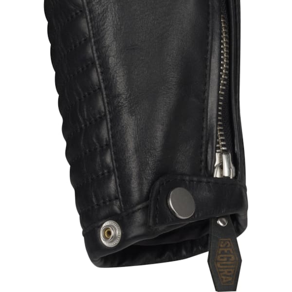 Four closable (zip) pockets in the front, a napoleon pocket and two inner pockets (also in the inner lining) provide quite a lot of storage space. Remember, this is still a leather motorcycle jacket with a so-called ‘body fit’, which means that it should fit snug and tightly.