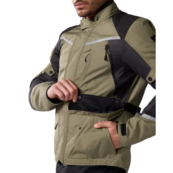 REV’IT! has its characteristic cut, for touring jackets as well. If you’ve never worn REV’IT! before, you might feel it’s kind of short, even though the back is worked out longer than the front in order to avoid a bare back. In the front, the REV’IT! style will have the irrefutable advantage that a bulging jacket will never be a source of irritation. On the motorcycle, where it counts, this ensures optimal wearing comfort.