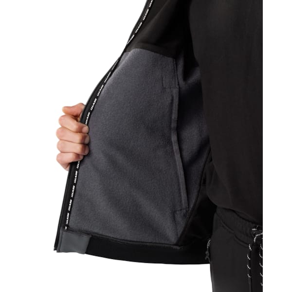 The exterior in stretching polyester – PWR|Fleece – is sashed with rib knit at the bottom and at the sleeves. Thumb loops make sure that everything fits closely when combined with motorcycle gloves. It seems obvious that you don’t wear this during the winter months, because there are no waterproofness nor additional linings present.