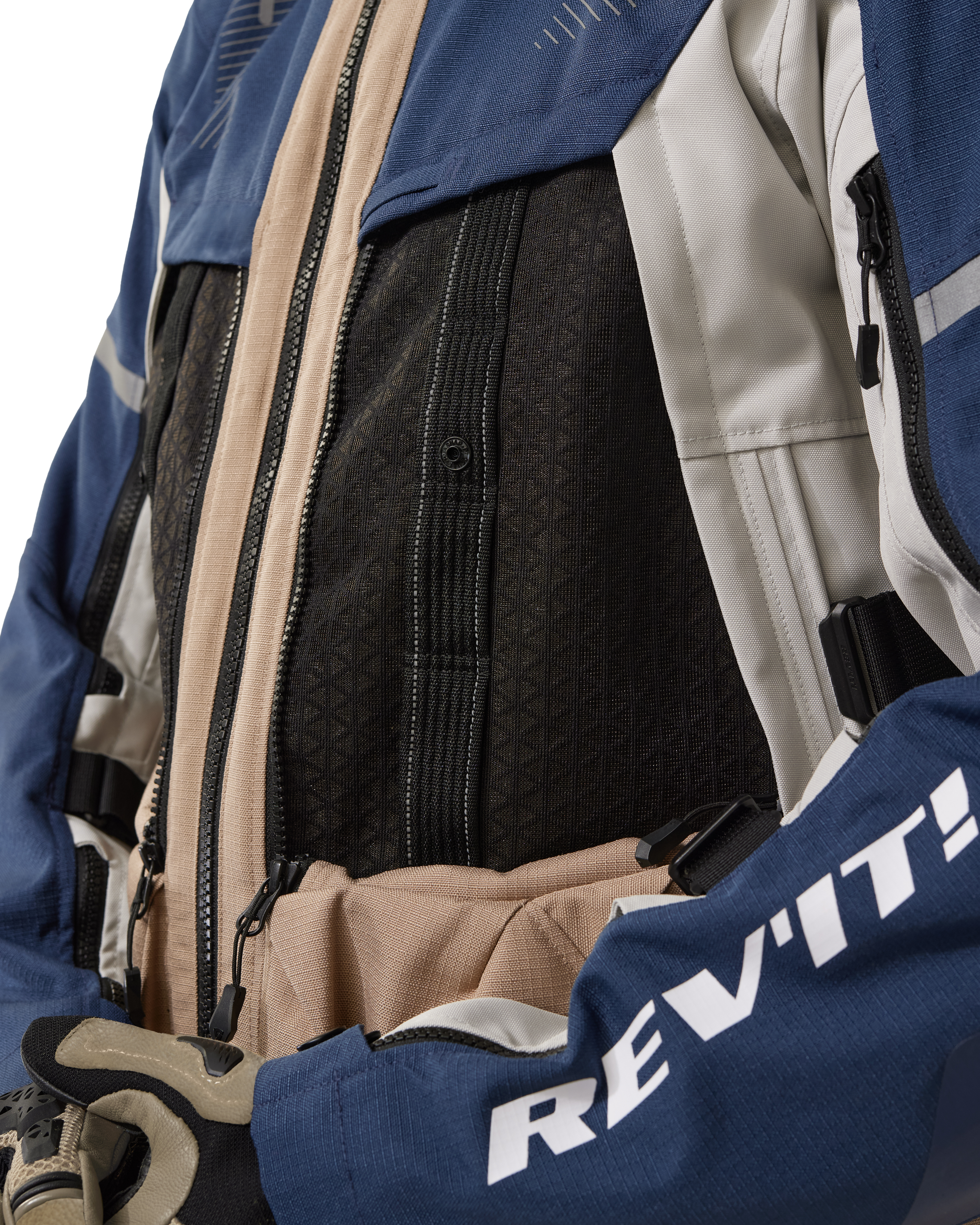 Between the Sand 5 H2O and its predecessor, REV’IT! developed the Offtrack 2, a motorcycle jacket that brought about a couple of insights, which resulted in a Sand 5 H2O that is even better than its impressive ancestors. Underneath a solid outer layer made of polyester 600D ripstop and 600HD, the Sand 5 H2O houses a bucketload of high-technology ingenuity. In random order, this includes a breathing, removable Hydratex|3L membrane which ensures a motorcycle jacket that is 100% waterproof. You can wear this membrane over or underneath the actual motorcycle jacket. The fact that the sleeves have a hardwearing layer illustrates how it’s perfectly doable to choose either.